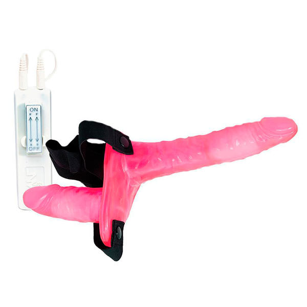 Девайс с двумя пенисами крепится на мягком ремешке. Мультискоростной. Не содержит фталатов. Управляется при помощи кнопки вкл/выкл.