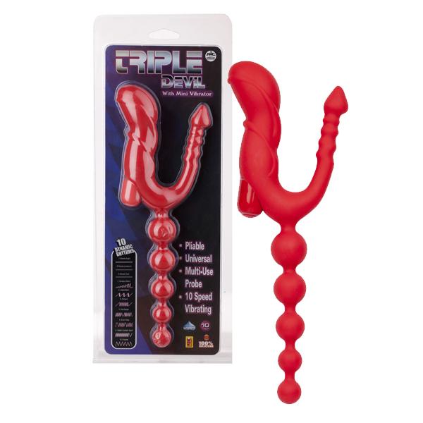 TRIPLE DEVIL VIBR. BUTTPLUG RED