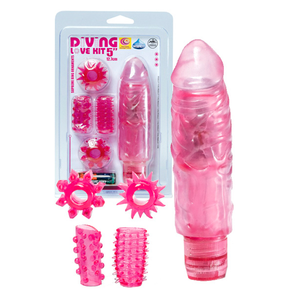 Набор массажеров и аксессуаров DIVING LOVE KIT 5 VIBRATOR & 4 RINGS состоит из следующих элементов: вибратор с эрекционными кольцами. Отталкивает воду и имеет несколько режимов вибрации. Работает от аккумулятора.