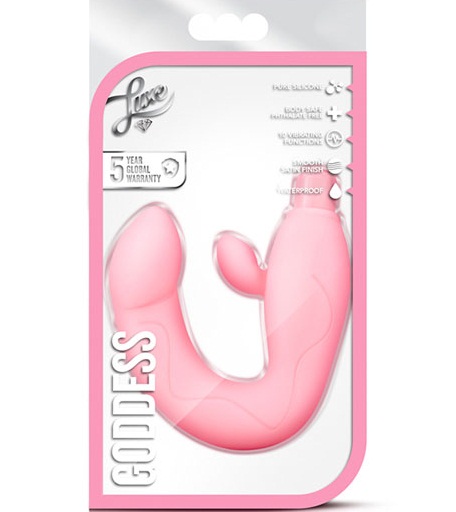 Двойной вибромассажер с одной стороны стимулирует точку G и клитор, с другой - стенки влагалища. Имеет 10 режимов вибрации и может использоваться женскими парами для одновременного получения удовольствия, а также для двойного проникновения. Управляется при помощи кнопки у основания.