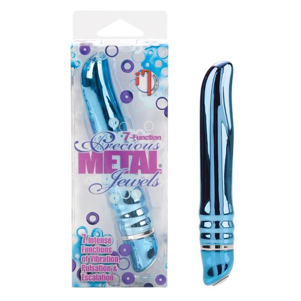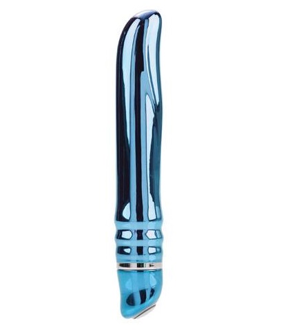 Вибромассажер небесного цвета метталик способен поразить девушку своим дизайном. Приходит в действие нажатием всего одной кнопкой. Имеет 7 режимов вибрации, пульсации и эскалации (нарастание). Данная модель работает от 2 мизинчиковых батареек типа ААА. Длина 14 см, диаметр 2,5 см.