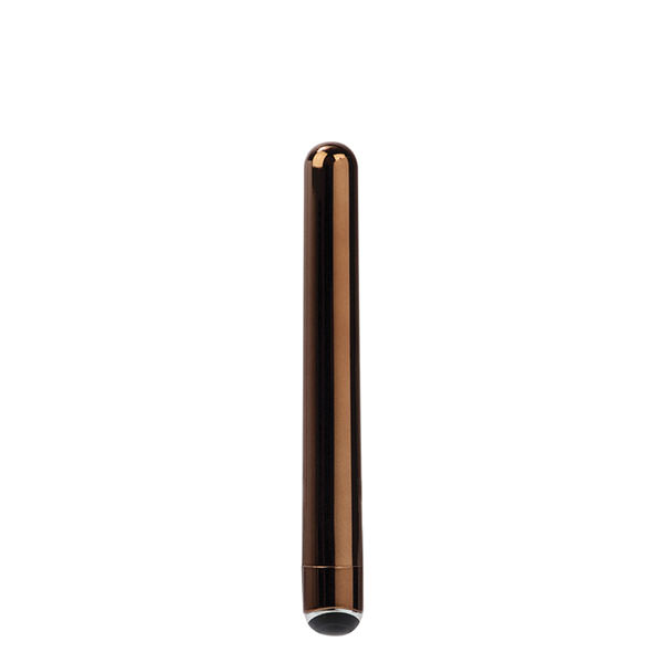 Вибратор цвета бронзы с несколькими функциями вибрации имеет водонепроницаемую поверхность, что позволяет использовать его в ванной комнате. Стильный внешний вид вибратора, подойдет для подарка любимой. Управляется кнопками переключения и снабжен различными современными функциями.
