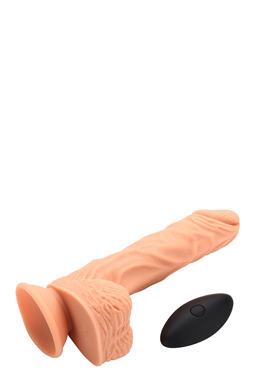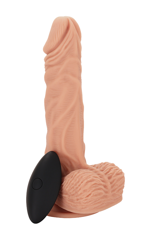 Этот реалистичный вибрирующий фаллоимитатор имеет реалистичный внешний вид, с мягкой кожей, венами и мошонкой, изготовлен из жидкого силикона, мягкий и не содержит фталатов, имеет прочную сердцевину, обеспечивающую реалистичный опыт. Он обеспечивает сильную вибрацию и вращательные движения, которыми можно управлять с помощью кнопки у основания фаллоимитатора или с помощью беспроводного пульта дистанционного управления. Благодаря прочному основанию на присоске он надежно удержится на любой плоской гладкой поверхности, позволяя работать без рук и в одиночку.