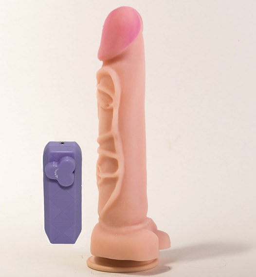 Вибратор с выносным блоком Биоклон телесного цвета выглядит совсем, как настоящий пенис.