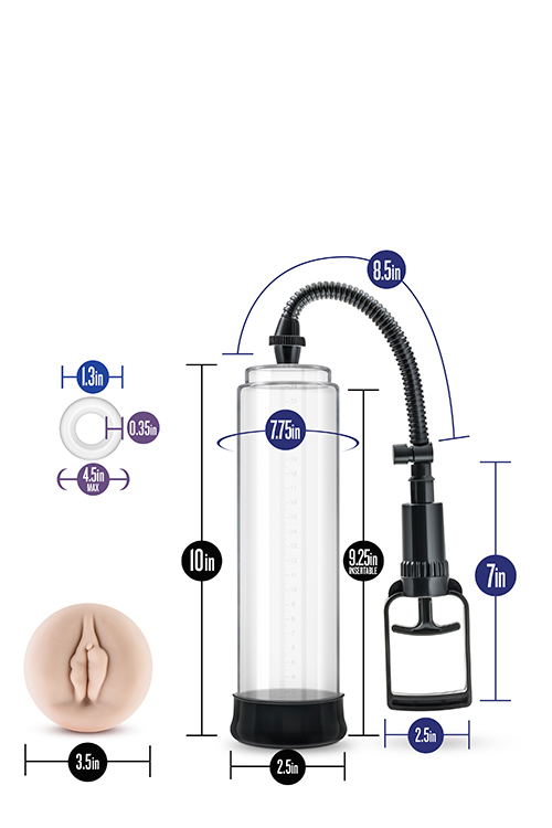 Прозрачный, воздухонепроницаемый корпус. Уплотнитель нежно и плотно прилегает к основанию фаллоса и не пропускает внутрь воздух. Комфортная конструкция для откачивания воздуха из цилиндра. В набор входит 2 уплотнителя-насадки для насоса (в виде вагины и в виде плотно прилегающей прокладки).