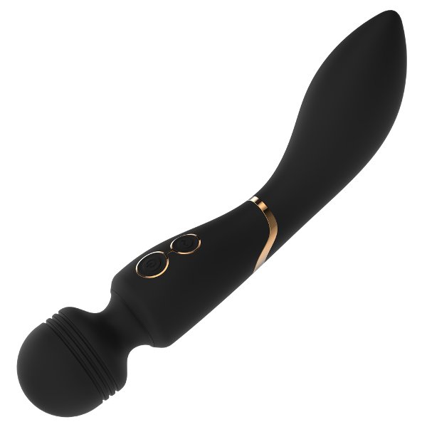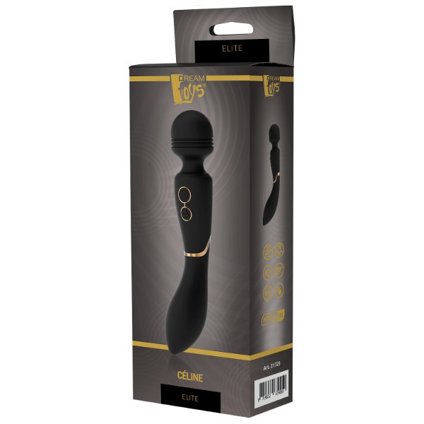 Вибратор Céline из элитной коллекции Dream Toys - это черная палочка со стильными вставками золотого цвета, прочной ручкой, округлой головкой и слегка гибкой шеей. У Céline есть 2 мощных двигателя, один в головке и один в основании, каждый из которых обеспечивает 7 режимов вибрации и 3 скорости. Два двигателя работают раздельно. Вибратор Céline перезаряжается с помощью прилагаемого USB-кабеля. Он изготовлен из пищевого мягкого силикона и ABS, водонепроницаем по стандарту IPX7 и безопасен для тела, не содержит фталатов и латекса. Управление может осуществляться с помощью 2 кнопок: верхняя кнопка для включения / выключения вибратора и управления вибрациями в головке, нижняя кнопка для переключения программ вибрации нижнего двигателя.