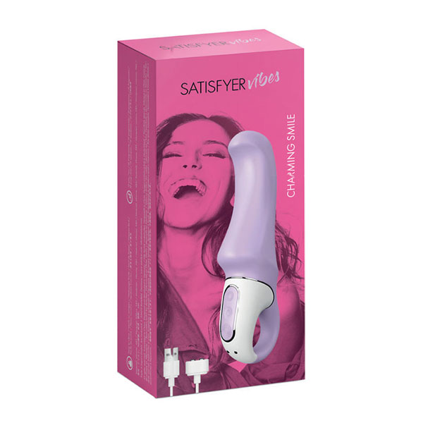 Вибромассажер-фаллоимитатор Satisfyer Vibes Charming Smile - современный перезаряжаемый вибратор для стимуляции точки G из высококачественного жидкого цельнолитого силикона. Это изделие имеет эргономичный изгиб с рельефной волной по всему телу, изогнутый округлый кончик, утолщенное основание и удобную ручку для комфортного извлечения. Мотор вибромассажера работает тихо и обеспечивает 6 режимов интенсивности и 6 функций равномерной сверхмощной глубокой вибрации.