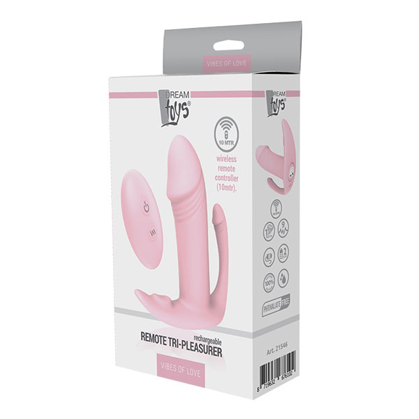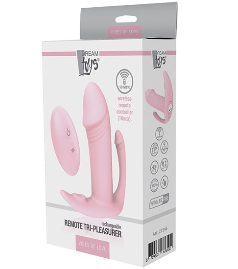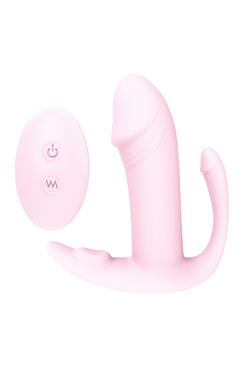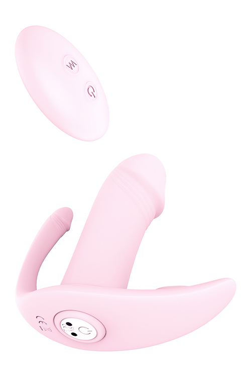 Вибромассажер для стимуляции трех интимных зон с беспроводным пультом дистанционного управления.