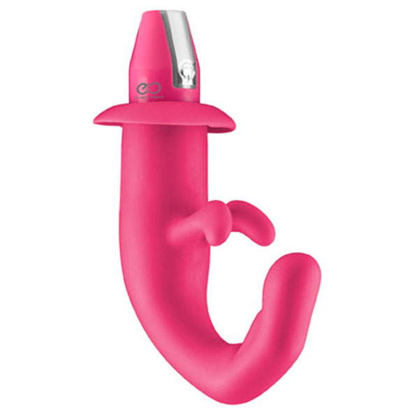 Силиконовый вибромассажер с клиторальным стимулятором. Перезаряжаемый. Водонепроницаемый. Эргономичный дизайн. Изогнутая форма для лучшей стимуляции. Удобная ручка для комфортного извлечения. Имеет 10 режимов вибрации.