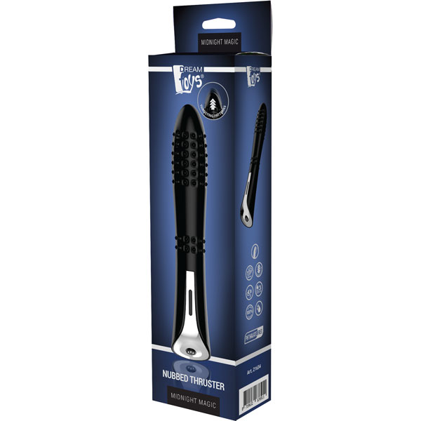 Nubbed Thruster представляет собой вибратор с гибким корпусом, который имеет шишки на нем для дополнительной стимуляции. Вибратор изготовлен из безопасного для тела силикона и перезаряжается. Мощный мотор предлагает 7 уровней магнетического толкания для уникального ощущения.