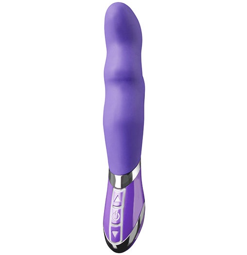 Вибромассажер-фаллоимитатор с неровной поверхностью и слегка изогнутой головкой.