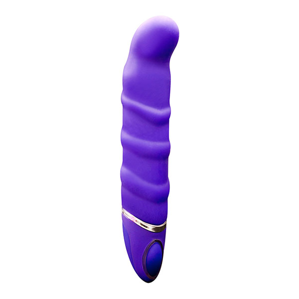 Перезаряжаемый водонепроницаемый силиконовый вибромассажер изогнутой формы с ребристой поверхностью для любителей погорячее.