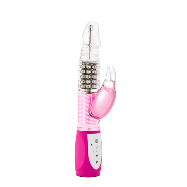 Вибромассажер-фаллоимитатор с клиторальной стимуляцией работает при помощи двух мощных, но бесшумных моторчиков. 5 рядов жемчужин внутри данной модели вращаются в трех режимах и стимулируют все эрогенные зоны. Водонепроницаемая и ребристая поверхность обеспечивает экстра стимуляцию.