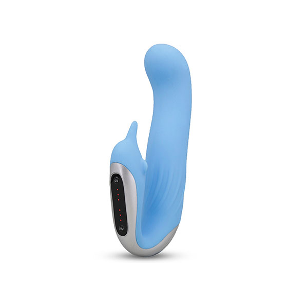 Вибромассажер-фаллоимитатор с клиторальным стимулятором в виде дельфина имеет гладкую, нежную поверхность и изогнутый конец для стимуляции точки G. Работает в семи различных режимах: 3 скорости пульсации, 3 режима вибрации, 1 скорость нарастания. Имеет водонепроницаемую поверхность.