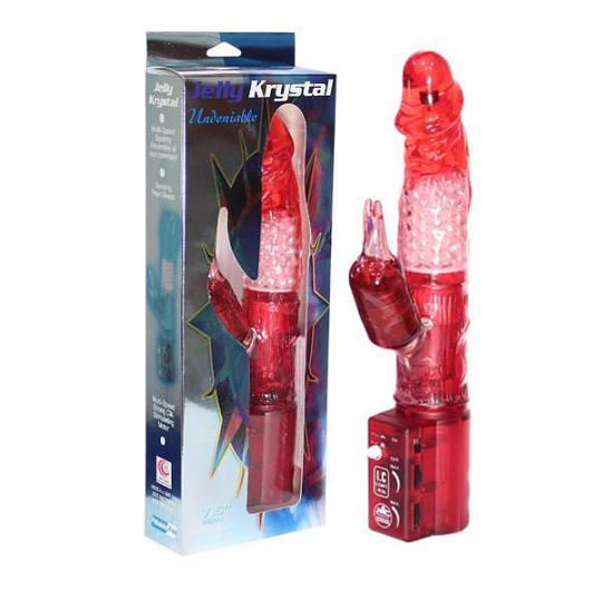 Вибромассажер-фаллоимитатор красного цвета с клиторальным отростком UNDENIABLE и вращающимися шариками внутри имеет несколько режимов вибрации и вращения.