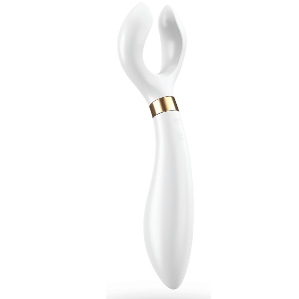 Satisfyer Partner Multifun 3 - перезарежаемый многофункциональный вибромассажер с изогнутой формой корпуса, с эргономичной U-образной головкой и округлыми кончиками. 3 моторчика обеспечивают 10 режимов мощной и равномерной вибрации с обоих концов. Комфортное управление осуществляется при помощи двух кнопок. Каждый из концов имеет собственное управление.